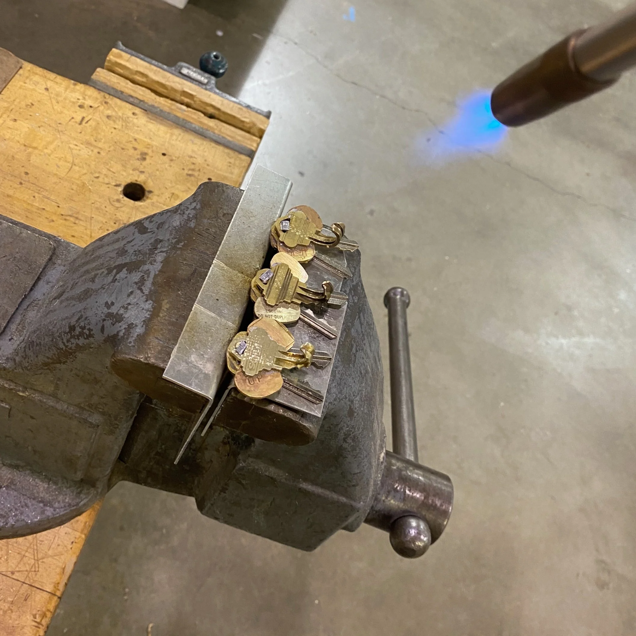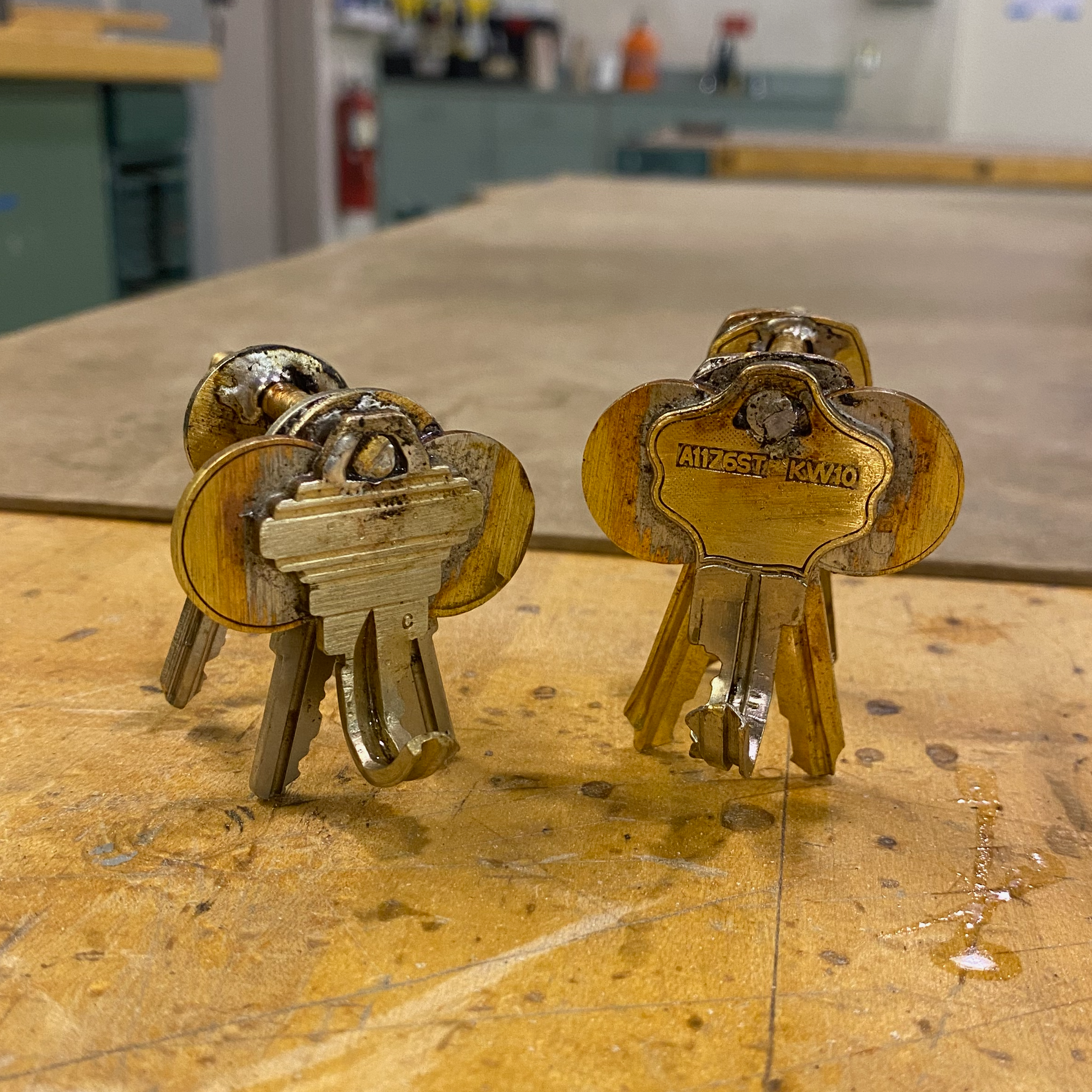 Made from old keys and scrap ebony from spare blocks from a local blade smith, Elli is a multipurpose wall hook.